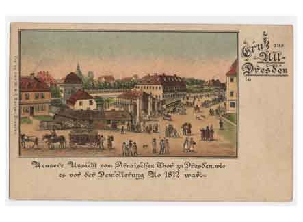 Pirnaische Vorstadt Illustierte Ansicht des Pirnaischen Tors vor seiner Zerstörung 1812. Historische Ansichtskarte um 1900. |