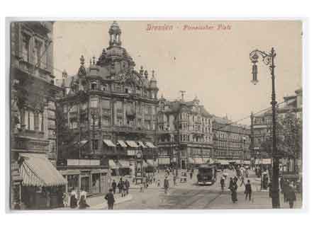 Blick auf den Pirnaischen Platz. Historische Ansichtskarte um 1910.