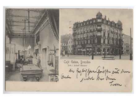 Grußkarte vom Café Anton. Historische Ansichtskarte um 1900.