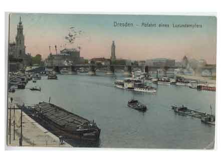 Innere Altstadt Schiffsverkehr auf der Elbe in Höhe des Terrassenufer mit dem Dampfschifflandeplatz. Historische Ansichtskarte um 1906. |