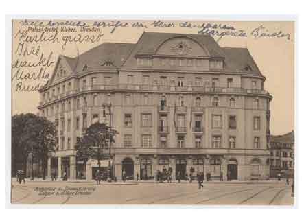 Blick auf das Palast-Hotel Weber. Historische Ansichtskarte um 1910.