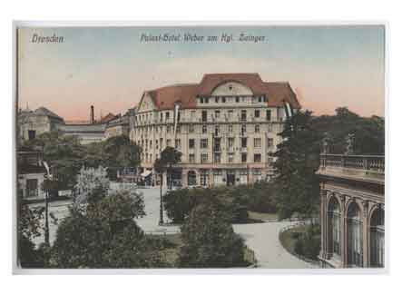 Blick auf das Palast-Hotel Weber am Zwinger. Historische Ansichtskarte um 1910.