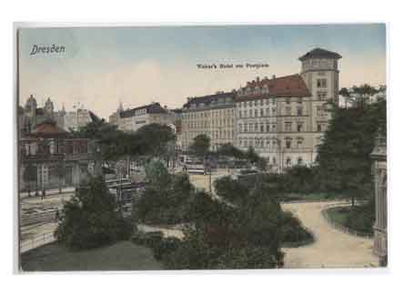 Blick auf das Palast-Hotel Weber am Zwinger. Historische Ansichtskarte um 1910.