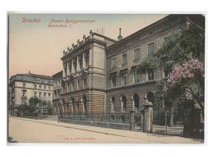 Blick auf das Annen-Realgymnasium in der Humboldtstraße 3. Historische Ansichtskarte um 1910.