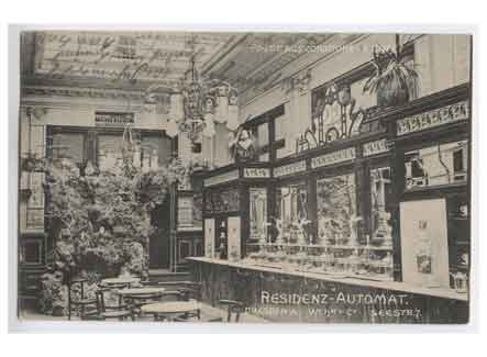 Blick in den Innenraum des Residenz-Automaten in der Seestraße 7. Historische Ansichtskarte um 1910.