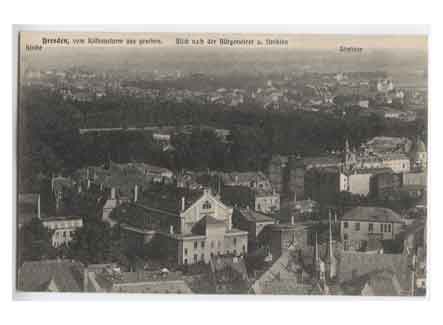 Seevorstadt Blick vom Rathausturm in Richtung Bürgerwiese auf die Babisnauer Pappel und die Lüttichhausstraße. Historische Ansichtskarte um 1910. |