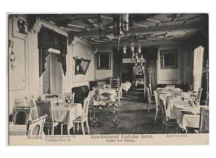 Blick in das Weinrestaurant Englischer Garten. Historische Ansichtskarte um 1910.