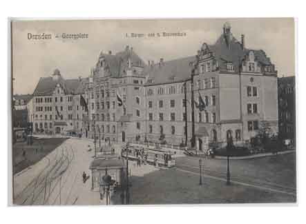 Blick auf den Georgplatz mit der 1. Bürger- und 9. Bezirksschule. Historische Ansichtskarte um 1910.