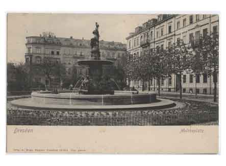 Blick auf den Brunnen am Moltkeplatz. Historische Ansichtskarte um 1905.