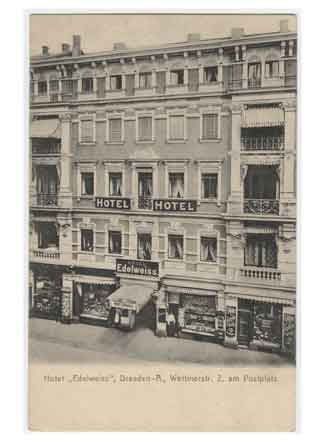 Blick auf das Hotel EdelweiĆ am Postplatz. Historische Ansichtskarte um 1905.