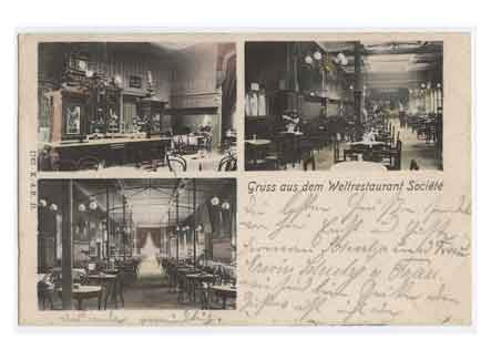 Blick in das Weinrestaurant Société. Historische Ansichtskarte um 1900.
