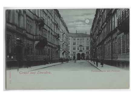 Blick in die Portikusstraße mit Portikus. Historische Ansichtskarte um 1905.