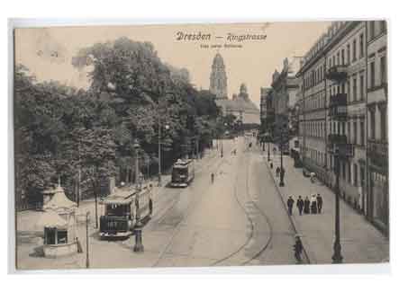 Blick in die Ringstraße mit dem neuen Rathaus im Hintergrund. Historische Ansichtskarte um 1910.