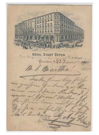Blick auf das Hotel Stadt Gotha. Historische Ansichtskarte um 1900.