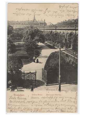 Blick auf den Herzogingarten an der Ostraallee. Historische Ansichtskarte um 1900.