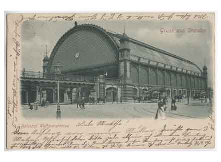 Blick auf den Bahnhof in der Wettinerstraße. Historische Ansichtskarte um 1905.