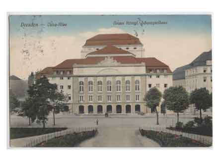 Blick auf das Königliche Schauspielhaus in der Ostraallee. Historische Ansichtskarte um 1910.