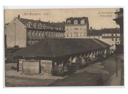 Blick auf die Trödelhallen am Stiftsplatz. Historische Ansichtskarte um 1910.