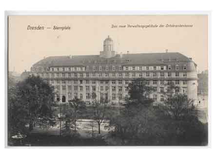 Wilsdruffer Vorstadt Blick auf das neue Verwaltungsgebäude der Ortskrankenkasse am Sternplatz. Historische Ansichtskarte um 1910. |