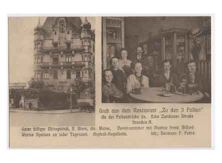 Wilsdruffer Vorstadt Grußkarte aus dem Restaurant "Zu den 3 Falken" an der Falkenbrücke. Historische Ansichtskarte um 1900. |