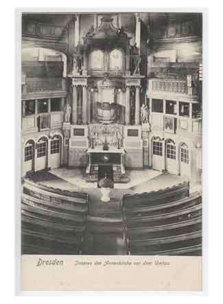Blick in den Innenraum der Annenkirche mit dem Altar. Historische Ansichtskarte um 1905.