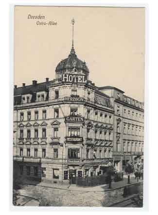 Blick auf das Hotel Herzogin Garten in der Ostraallee. Historische Ansichtskarte um 1910.