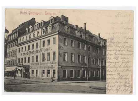 Blick auf das Hotel "Reichspost". Historische Ansichtskarte um 1900.