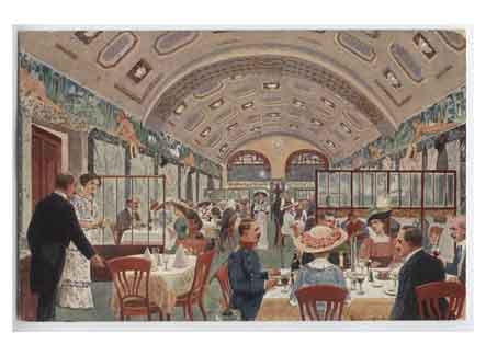 Illustrierte Ansicht einer Gaststube. Historische Ansichtskarte um 1900.
