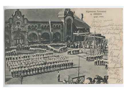 Wilsdruffer Vorstadt Versammlung des Allgemeinen Turnvereins zu Dresden, gegründet 1844. Historische Ansichtskarte um 1905. |