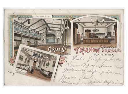 Grußkarte aus dem Trianon. Historische Ansichtskarte um 1900.
