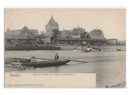 Partie an der Elbe beim Königlichen Futter-Magazin. Historische Ansichtskarte um 1905.