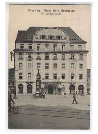 Wilsdruffer Vorstadt Blick auf das Grand Hotel Reichspost in der Großen Zwingerstraße. Historische Ansichtskarte um 1910. |