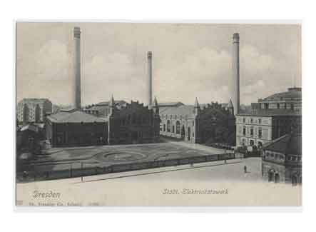 Blick auf das Städtische Elektrizitätswerk. Historische Ansichtskarte um 1905.