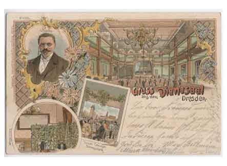 Grußkarte aus dem Dianasaal. Historische Ansichtskarte um 1900.