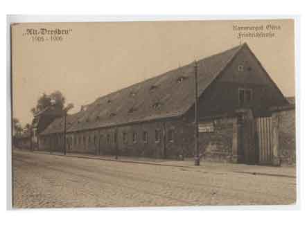 Blick auf das Kammergut Ostra in der Friedrichstraße. Historische Ansichtskarte um 1910.