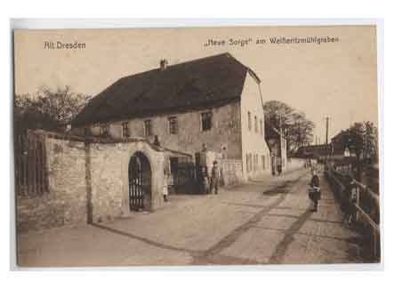 Blick auf die "Neue Sorge" am Weißeritzmühlgraben. Historische Ansichtskarte um 1910.