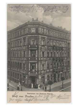 Blick auf das Restaurant Hermann Nitsches. Historische Ansichtskarte um 1905.