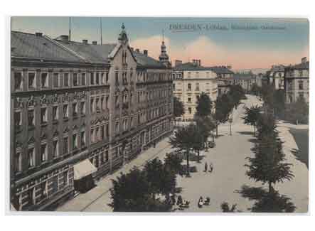 Blick auf den Bünauplatz und die Oststraße. Historische Ansichtskarte um 1910.