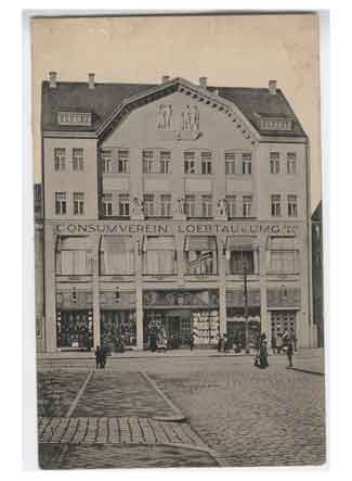 Blick auf das Haus des Consumvereins. Historische Ansichtskarte um 1910.