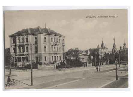 Blick in die Münchner Straße/Ecke Eisenstuckstraße. Historische Ansichtskarte um 1910.