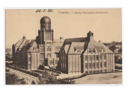 Südvorstadt Blick auf die Neue Sächs. Technische Hochschule an der George-Bähr-Straße/Ecke Fritz-Foerster-Platz. Historische Ansichtskarte um 1910. |