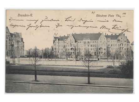 Blick über den Münchner Platz. Historische Ansichtskarte um 1910.