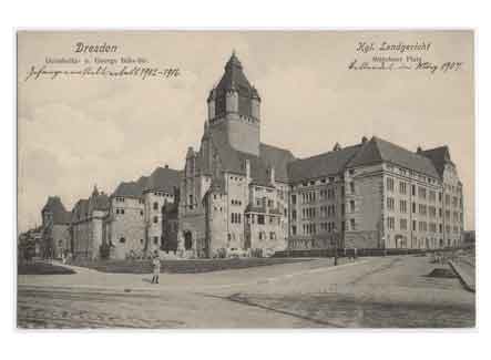 Blick auf das Kgl. Landgericht am Münchner Platz. Historische Ansichtskarte um 1910.