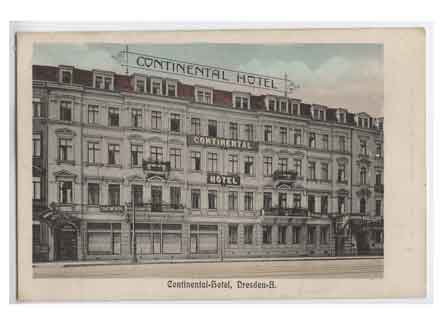 Blick auf das Continental Hotel in der Bismarckstraße. Historische Ansichtskarte um 1910.