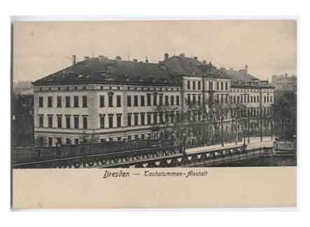 Blick auf die Taubstummen-Anstalt in der Chemnitzer Straße. Historische Ansichtskarte um 1900.