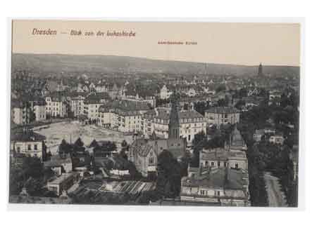 Blick von der Lukaskirche über Dresden. Historische Ansichtskarte um 1910.