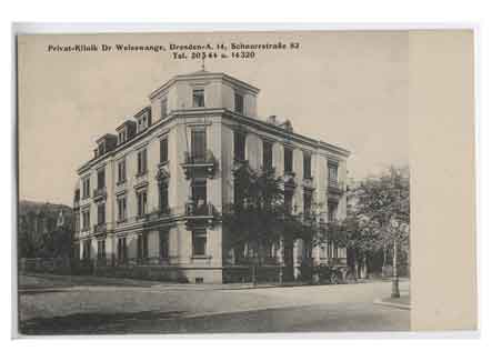 Südvorstadt Blick auf die Privatklinik Dr. Weisswange in der Schnorrstraße/Ecke Semperstraße. Historische Ansichtskarte um 1905. |