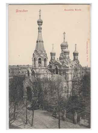 Blick auf die Russisch-Orthodoxe Kirche an der Reichskirche. Historische Ansichtskarte.