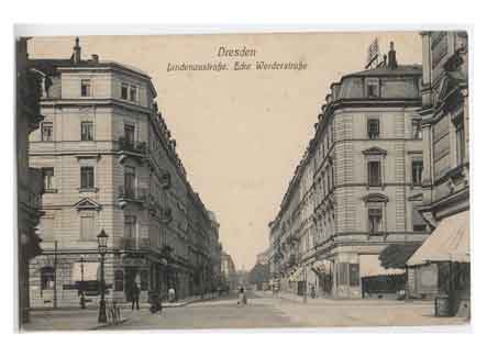 Blick in die Lindenaustraße/Ecke Werderstraße. Historische Ansichtskarte um 1910.