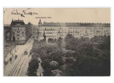 Blick über den Bismarckplatz zu Härtigs Carlton-Hotel. Historische Ansichtskarte um 1910.